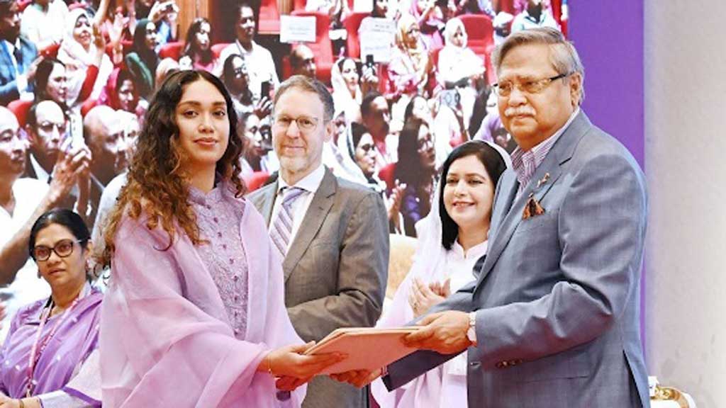 আন্তর্জাতিক নারী দিবসে খালেদা জিয়ার পুরস্কার নিলেন জাইমা রহমান
